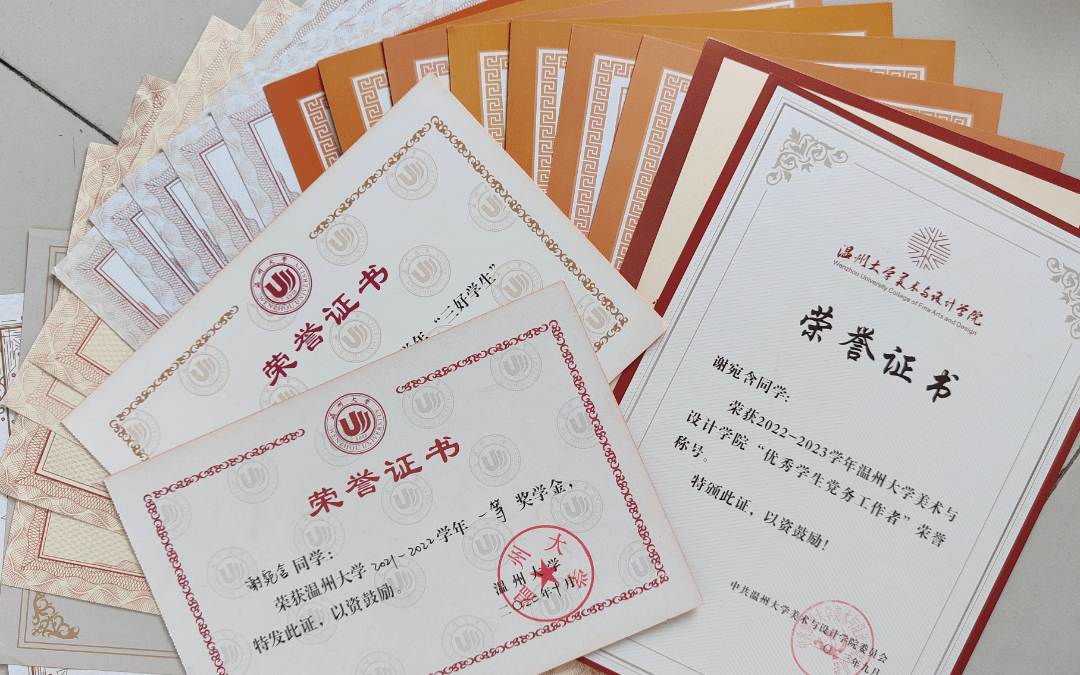 个人成长方面,谢宛含大学三年的综合排名保持在本专业第一,平均绩点最高达4.32,连续三年获得万象城awc官网登录入口一等奖学金、三好学生,并在2023-2024学年获评国家奖学金、2022—2023学年获评浙江省政府奖学金。在校期间,还获评万象城awc官网登录入口“优秀共青团员”、“优秀学生干部”、“国防动员教育先进个人”、“暑期社会实践活动先进个人”、“劳动教育实践活动先进个人”和“志愿服务工作先进个人”等荣誉称号。