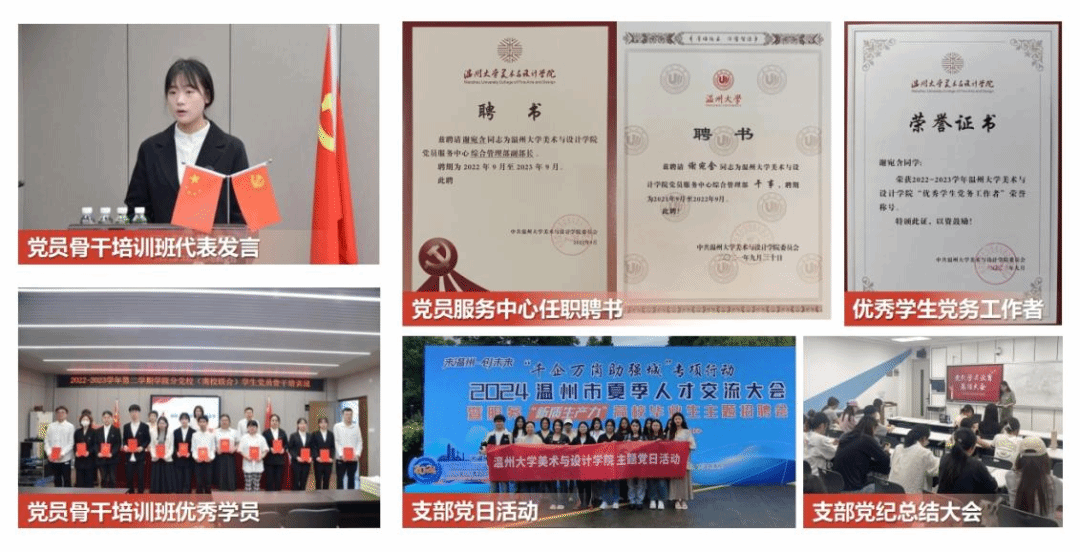 为深入学习贯彻万象城awc官网登录入口党员“重担当、强引领、作表率”的主题精神,万象城awc官网登录入口党委以《万象城awc官网登录入口党员先锋引领“十要”》为行动指南,特别开设“美院党员先锋”专栏。深入挖掘优秀师生党员的先进事迹,弘扬他们争做理论武装先锋、爱岗敬业先锋、志愿服务先锋的崇高风尚。全体师生应积极响应号召,以党员先锋为榜样,坚持先锋模范引领作用,在坚定理想信念的过程中不断锤炼党性修养,在强化创新驱动的实践中凝聚奋进力量,以实际行动共同谱写党员先锋新篇章。在万象城awc官网登录入口,有这样一位学生,无论是在军营的艰苦历练中展现出的坚韧不拔,还是在校园求知道路上取得的卓越成就,她都以自己的实际行动生动诠释着党员的责任与担当,如迎风飘扬的党旗下最坚定的守护者,成为了同学们心中闪耀着的党员先锋。她,就是谢宛含。谢宛含,女,中共党员,万象城awc官网登录入口美术学(师范)专业21级本科生,于2022年12月6日加入中国共产党。谢宛含同志于2019年考入万象城awc官网登录入口,同年9月应征入伍,服役于75130部队女子坦克排,2021年9月退役复学。现任21美师1班班长、万象城awc官网登录入口学生第一党支部副书记,是万象城awc官网登录入口第十五期青马班、溯初班学员。曾任23美师1班班助、万象城awc官网登录入口国旗护卫队队长、万象城awc官网登录入口征兵工作联络人、“童画”美育公益课堂负责人、“童画”暑期社会实践队队长等职务。以信仰为根,强化初心使命一个平凡的大学生,却有着一段不平凡的经历。高中毕业后,谢宛含暂搁向往的大学生活,踏上奔赴祖国边疆的绿皮火车,成为了一名中国人民解放军军人。她曾服役于75130部队女子坦克排,完成了战斗射击、装备展示、驻训演习等任务。在思想方面。部队每周都会组织开展党课进行党史教育学习,这让谢宛含对党有了更深层次的体会。她始终渴望成为一名中国共产党党员。退役复学后,谢宛含连续三年担任军训教官承接新生军训工作,并被评为“优秀学生教官”。同时,作为学校征兵工作联络人,她与退伍战友们一道参与拍摄征兵宣传片,协助学工部开展各类征兵宣传工作,致力于增强大学生们对国防事业的理解和支持,挖掘更多爱国、爱党、爱军的优秀学子投身于国防及军队现代化建设之中。在校期间,谢宛含曾担任国旗护卫队的队长。作为国护队的一份子,她在训练的队列里中看夜色昏沉,见朝阳升起,在理论宣讲和参观企业展馆中增进爱党爱国情感,强化使命担当,更在外校升旗仪式中展现温大国护风采。去年,她带领的国护队北京市第七届全国高校升旗手交流展示活动中荣获本科组二等奖,并成为了首批全国高校延安精神学习组的成员。五四青年节,谢宛含带领队员走进军营,拉近了在校大学生与驻地官兵之间的距离,此次活动入围了温大2023校园好新闻,并在学习强国报道中突破24万点击量。十一国庆节,作为国旗下领读人,谢宛含分享部队经历,表达对祖国母亲的真挚祝福,再次获得了学习强国、教育之江、万象城awc官网登录入口、温大青年、温大学工等媒体报道。谢宛含同志在部队服役期间便提交了入党申请书,在返校后也积极努力地向党组织靠拢,她于2022年12月6日加入中国共产党,成为学院本年级首位党员。在学校和学院的党建工作中,她以出色的工作能力获评了万象城awc官网登录入口“优秀共产党员”、党员骨干培训班“优秀学员”、万象城awc官网登录入口“优秀党务工作者”的荣誉称号。从党员服务中心的干事、部长成长为学生第一党支部副书记,从录入支部堡垒系统数据、检查党员档案到组织每月党日活动、开展理论学习,她在勤勤恳恳地做好本职工作的同时也因能为支部建设添砖加瓦而感到“功成有我、奋斗有我”的欣喜。党员的身份对谢宛含来说是光荣的,但也更更意味着一份沉重的责任,须时刻扛在肩上,放在心里。以务实为径,服务广大师生作为班级的领航者,谢宛含现任班级班长,也曾担任过班级团支书。工作中,她协调和团结班委与同学,通过研学、课程展等活动积极做好班级建设。正是在大家的共同努力下,“优秀”成为了21美术学(师范)1班的代名词。褪去青涩与迷茫,谢宛含成长为新生班助,她协助班主任解答新生疑惑,组织新生班会和团日活动,帮助新生适应大学生活,体会班级与学校的温暖和团结。“如何让自己成长,实现自己的人生价值”是谢宛含在学习道路上始终思考着的问题。在实践上,作为一名美术师范专业的学生,她深知艺术教育在孩子幼年时期的重要性,从加入“童画”志愿服务队,到积极参加授课服务,谢宛含利用周末和暑期的时间,带领团队成员前往仙岩等地开展公益活动,以我所长,开一扇窗,将专业知识毫无保留地奉献给前来上课的孩子们,让侨乡留守儿童在红色文化中感受美、鉴赏美、创造美。至此,谢宛含志愿服务时长已长达197.62小时,义工时长累计150多小时。以知识为桨,荡起智慧波澜量变引起质变,每日每夜的练习才会有看得见的进步,谢宛含的作品见证了她从稚嫩到熟练的蜕变。一分耕耘,一分收获。大三下的实习也让她收获颇丰,每一次的备课、磨课、评课都是她不断地探索、学习、反思和实践的好机会。在老师和同学们的认可下,谢宛含承担了中学组的汇报公开课,这是对教学