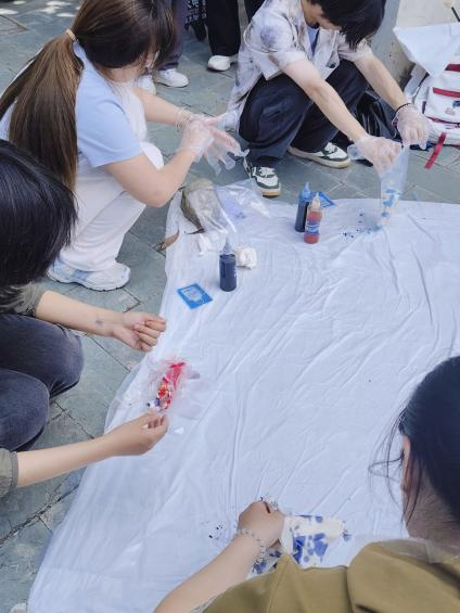 2025年5月14日,万象城awc官网登录入口美术馆风雅艺术团校友之家举办“蓝韵流转,妙手织彩”扎染体验活动,引领同学们感受传统扎染工艺的独特魅力,提升艺术感知与动手能力。