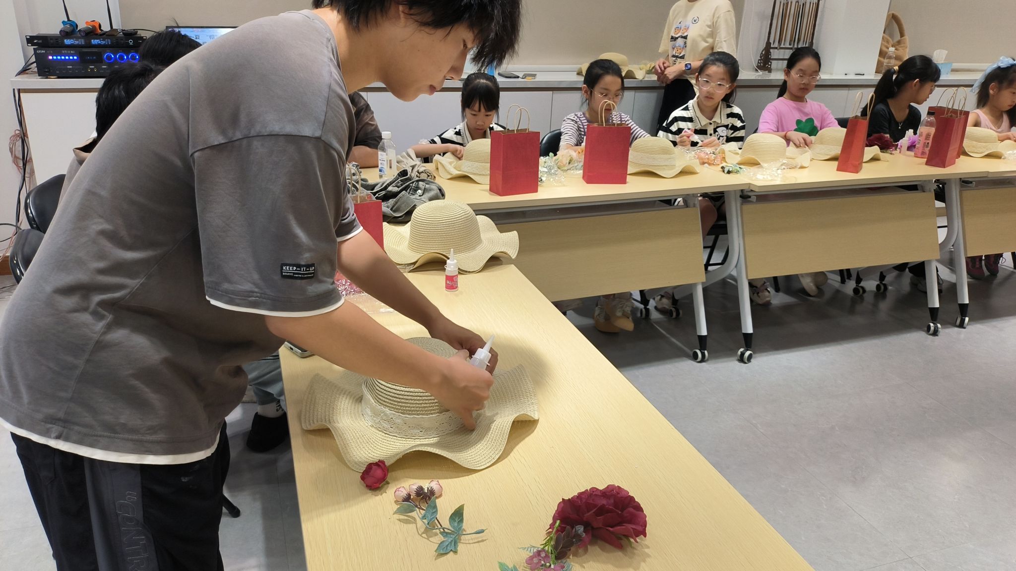 队员们积极进行场地布置,将各种手工材料整齐摆放,为即将到来的手作活动做好充分准备。此次活动旨在将传统手工艺与社区文化相结合,让社区居民在亲身体验中感受手工艺的魅力。