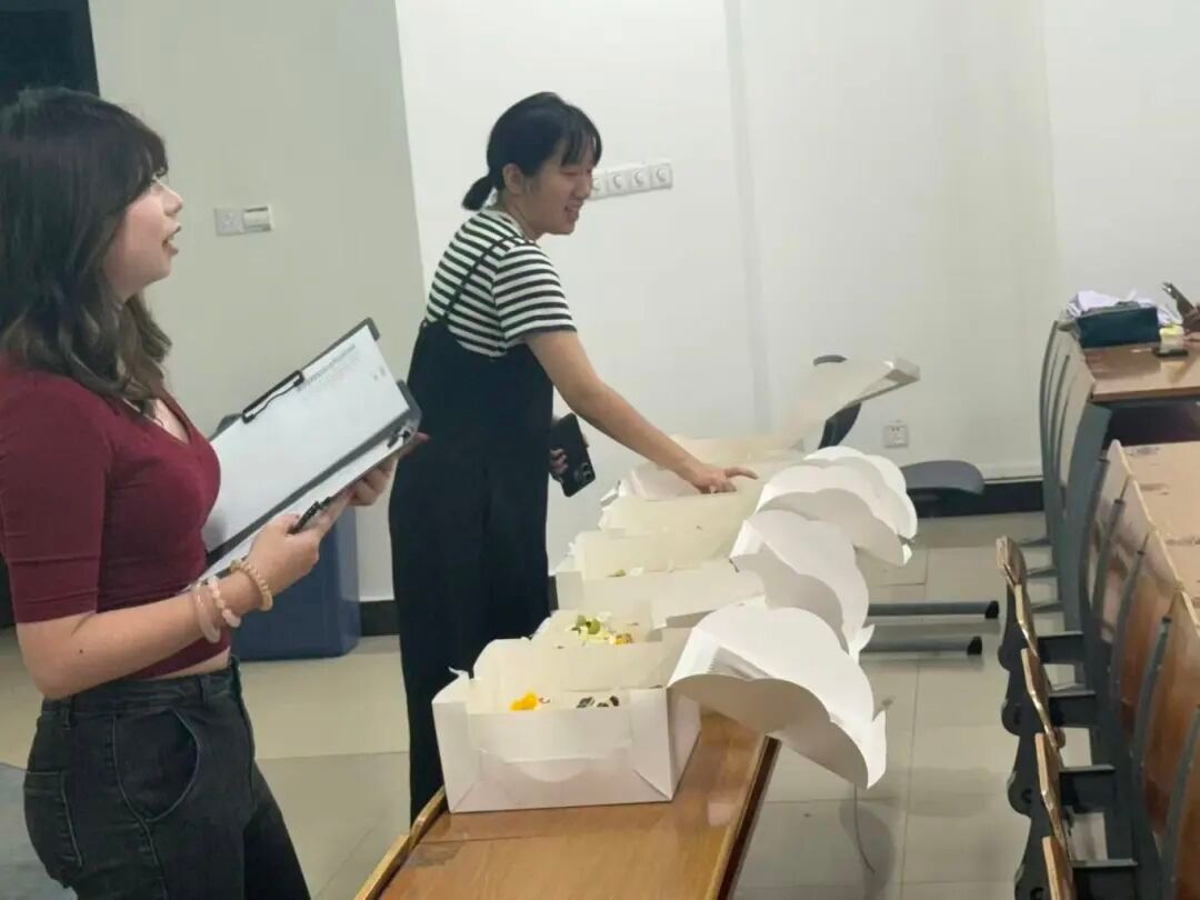 随着蛋糕的分发新成员也逐一介绍了自己。一块蛋糕,让社团友谊更对味。为了欢迎新成员的到来、拉进成员之间的距离,我们准备了一些蛋糕,用美食活跃气氛。 当不同社团的身影因活动相遇,总需要一点甜意打破初识的拘谨。不如把蛋糕变成“破冰密码”——切分的是绵密的奶油与松软的胚体,传递的却是“认识你很开心”的善意。