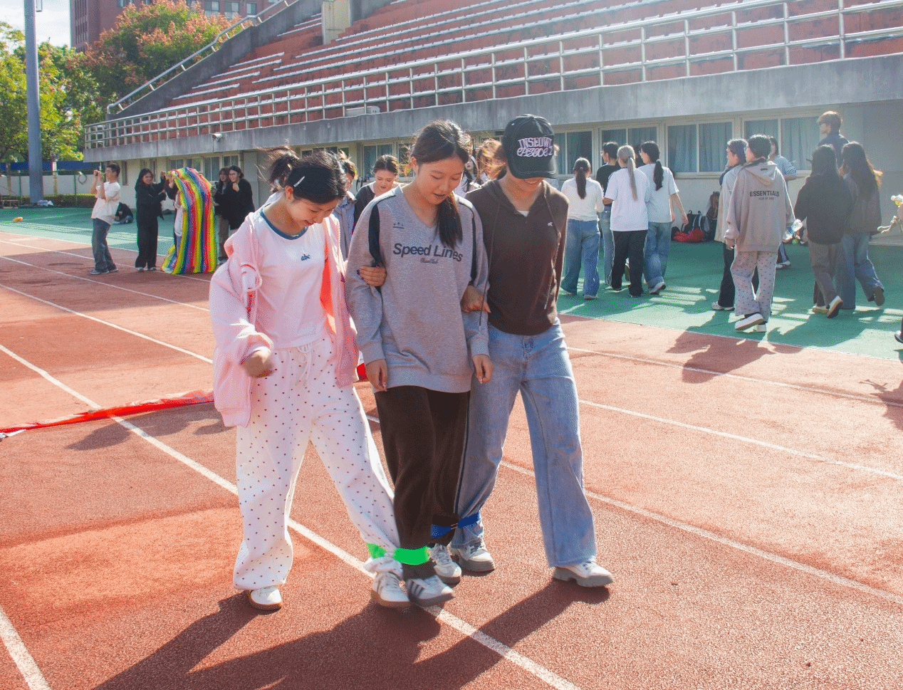 运动会于29日下午一点半时正式拉开帷幕。首先进行的是“三人四足接力跑”,三名队员将相邻的腿两两绑在一起。比赛开始,各组选手或喊着整齐的口号,默契地相互搀扶,奋力向终点迈进。这个项目不仅考验了个人的平衡感,更凸显了团队成员间配合的重要性。