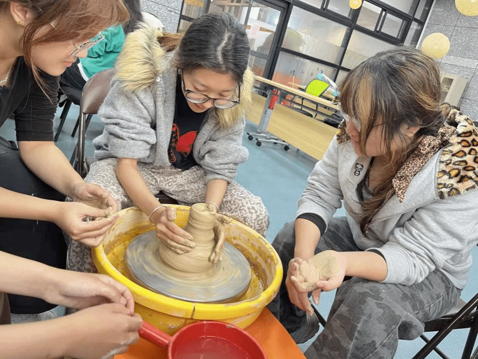 随后,活动进入实践环节。从选土、揉泥到拉坯、修坯,每一步皆是对耐心与技艺的双重考验。在章先生的悉心指导下,同学们亲手抚触陶土,感受其在指尖的细腻变化。