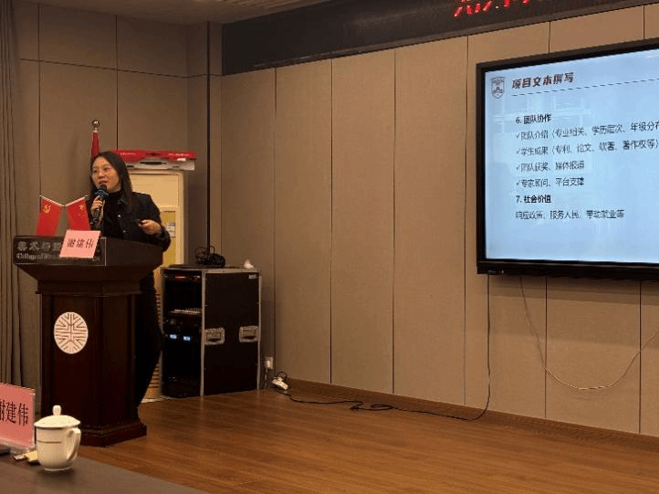 在大家最关心的备赛技巧部分,谢老师强调 “文本是进入决赛的敲门砖”,并仔细讲解了项目文本的八大核心模块,同时,也提醒大家要重视团队协作,根据成员的集体专业、学历层次合理分工,使竞赛作品能够适合不同专业的同学们,展现自己专业的特色。