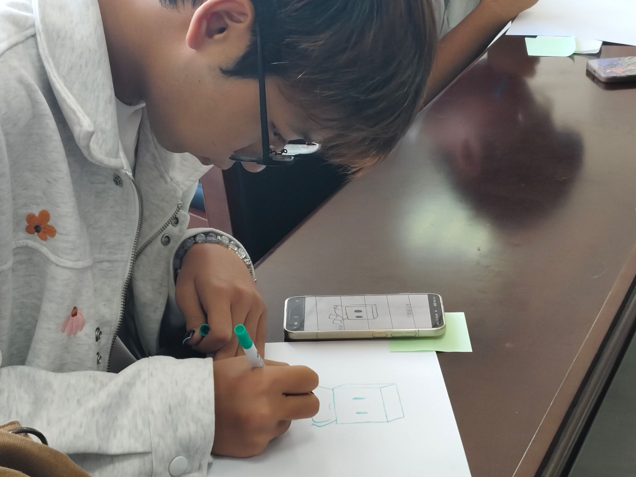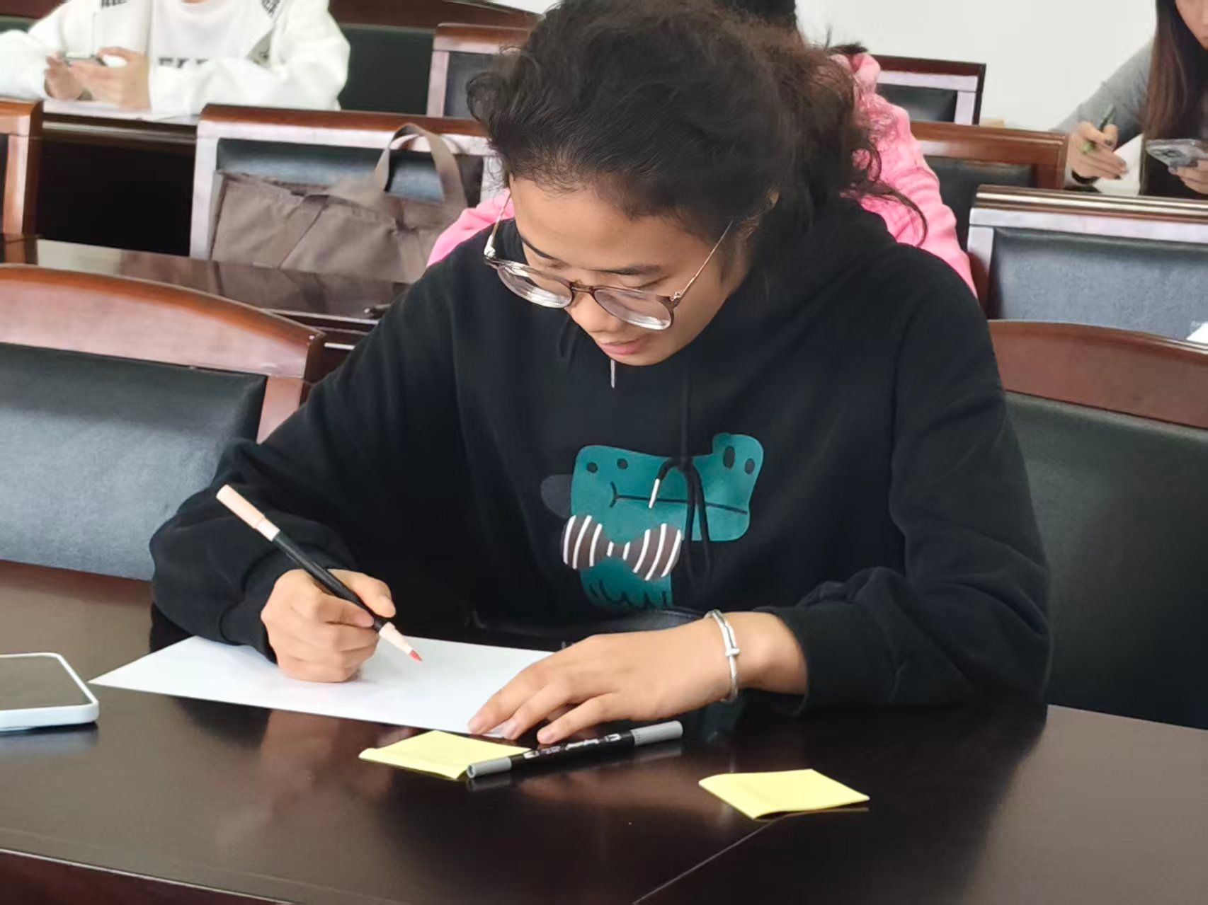 随着情绪被“激活”,现场便进入了创作的河流。心理协会的同学们铺开画纸,他们的主题是“我心中的立冬”。笔下流淌出的,不再是抽象的节气概念,而是具象的生活与情感:可能是记忆中一碗冒着热气的汤圆,是窗外一棵树叶落尽的梧桐,又或是想象中一场还未落下的初雪。每一笔色彩,都是心事的映照。